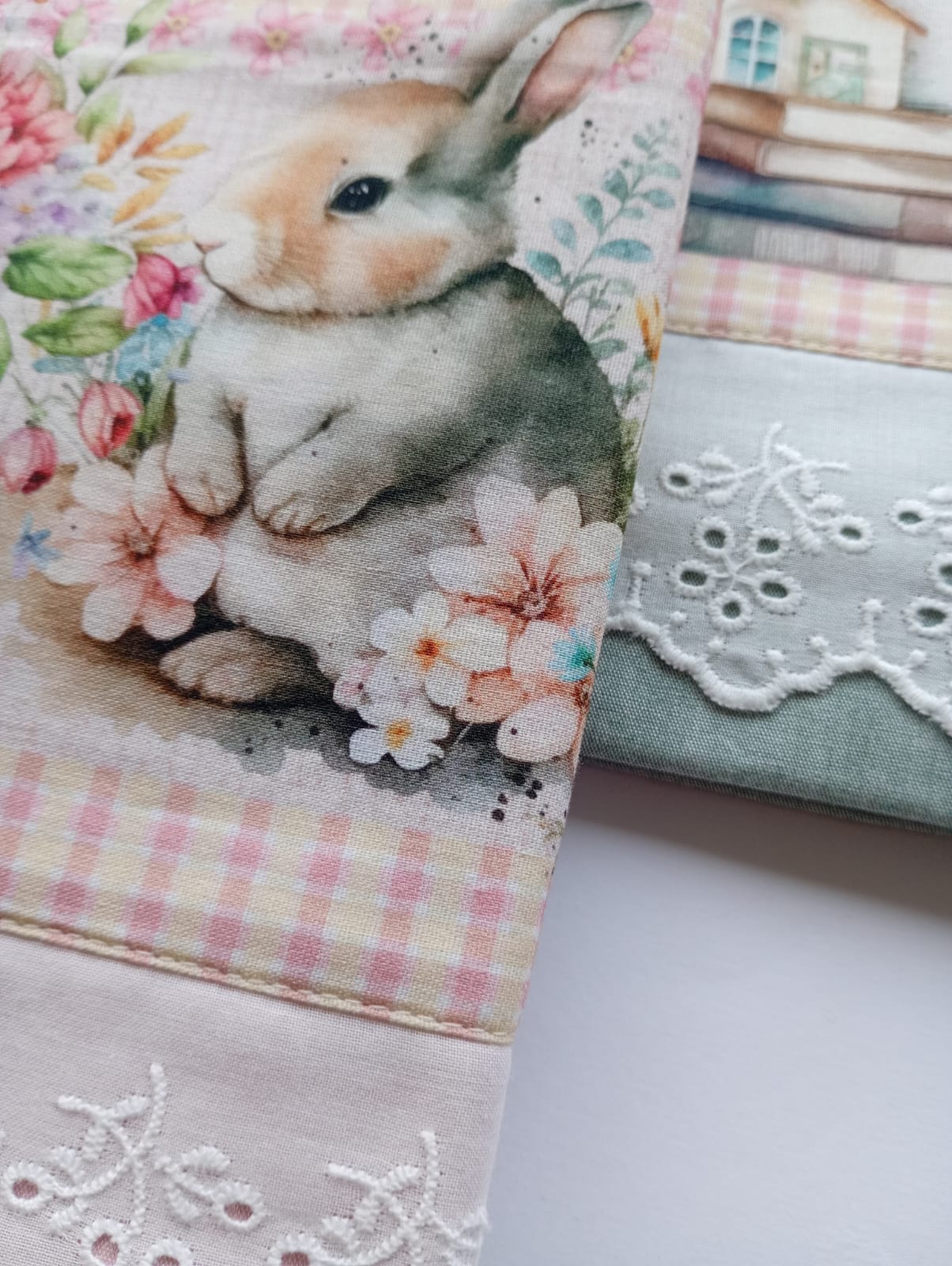 Pano de prato com tema de Páscoa, com detalhes lindos que deixa o ambiente mais bonito e agradável para a comemoração dessa data.